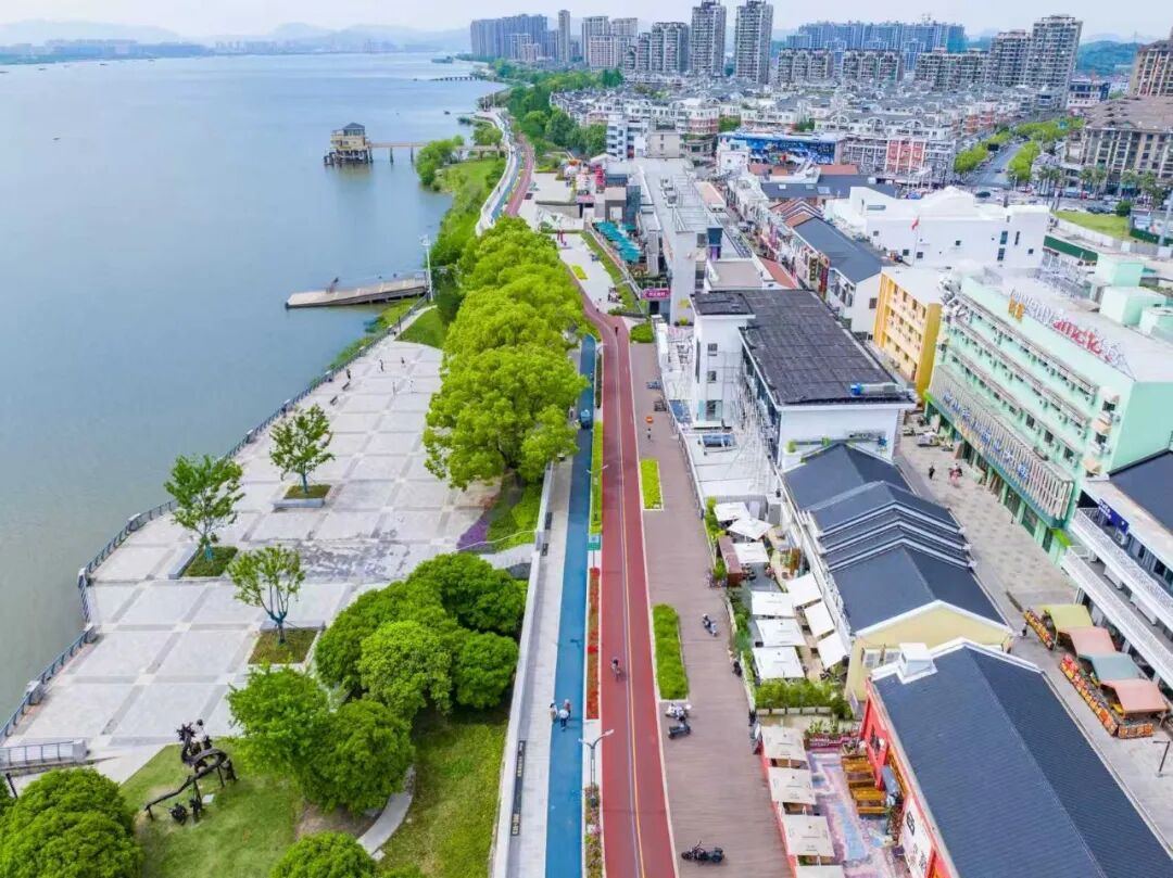 步道系统与闻堰码头相连,保留了“钱塘江上最后一个仍在运行的渡口”的历史记忆,也让河道不再是遥远的风景,而是可触摸、可体验的生活背景。不远处的闻堰老街,更延续着因水而兴的市井烟火,餐饮茶座里飘出的香气,仿佛也带着水润的气息。