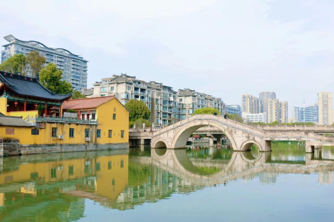 如今,清淤疏浚、景观提升的举措,让这里始终水清岸绿。古朴石拱桥静卧河面,与北岸罗婆寺相映成趣,行走河畔,千年孝韵随碧波流转,在时光里生生不息、代代发扬。