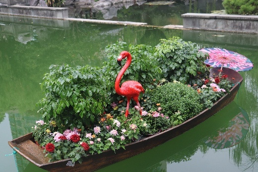 此外,暗合传统福禄文化的葫芦广场、充满童趣与神话色彩的“群猴闹月”立体花坛、芰荷池中的花船布置,秋声居长廊的精品菊展长廊,同样是秋日里的亮色,或蕴文化底蕴,或显童趣生机,或衬菊香雅韵,让人流连忘返。