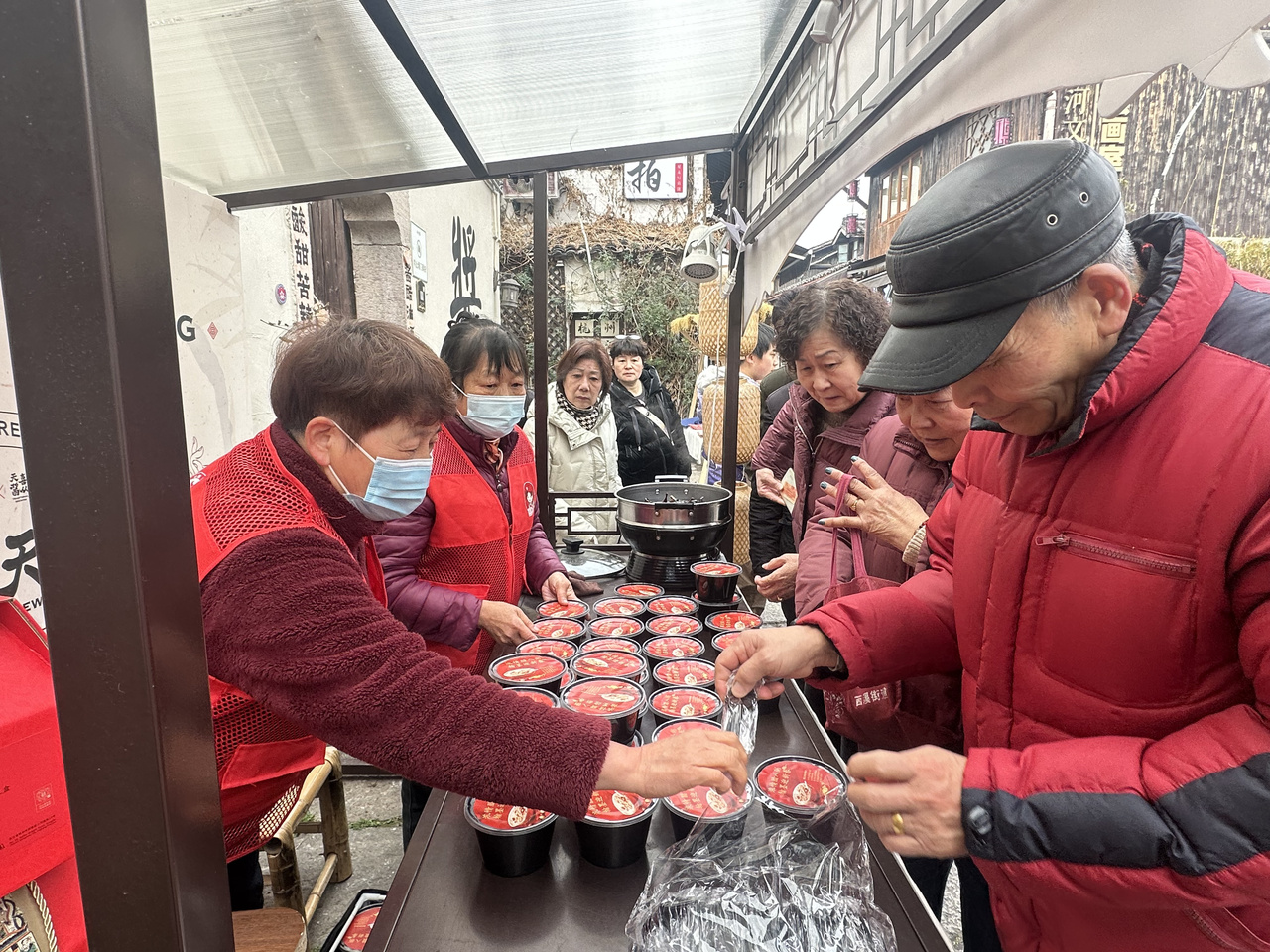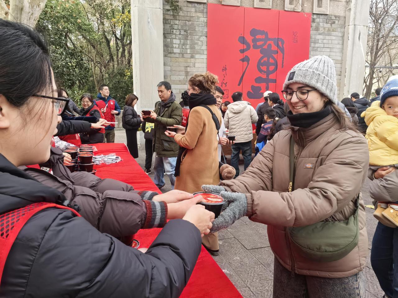 活动于运河东西两岸分设点位,遥相呼应。现场,精心熬制的腊八粥热气腾腾,免费赠送给往来的游客、社区居民、环卫工人、快递小哥以及外籍友人,在传递节日温暖与祝福的同时,也体现了社会各界的关爱与包容。