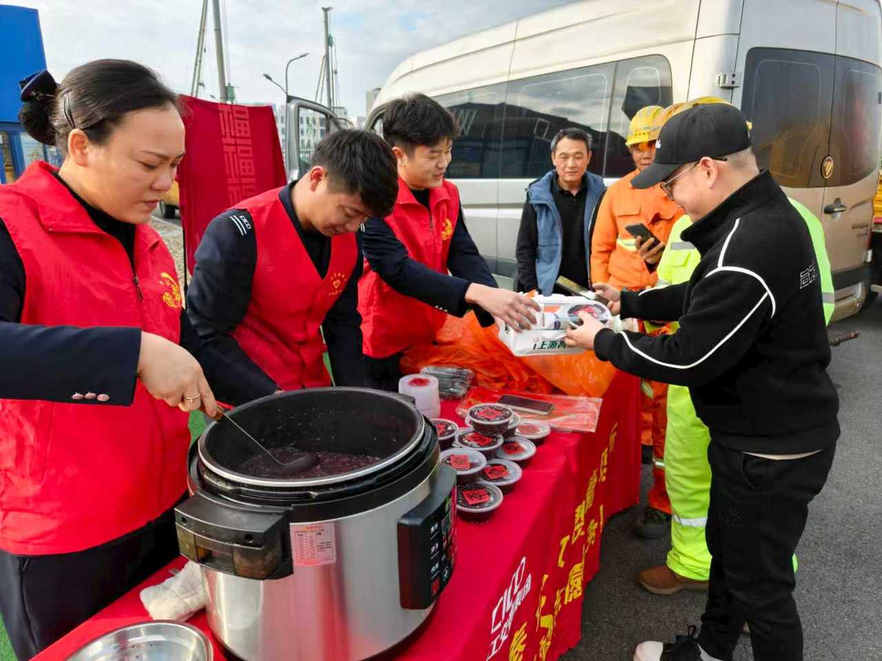 1月26日正值腊八节,年味渐浓。为了让奔波在高速路上的司乘人员感受节日温暖,浙江省交通集团高速公路宁波管理中心多支青年志愿服务队走进辖区收费站车道、暖心驿站、周边企业开展“情暖腊八 温情护航”志愿服务活动,用一碗碗热粥、一声声问候,为寒冬旅途注入融融暖意。