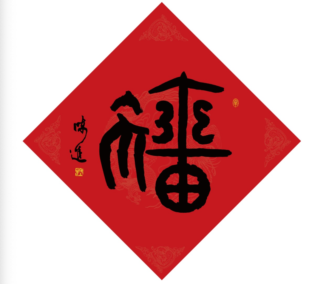陈进老师长期在杭州碑林工作,浸淫并深耕于传统文化事业,对于碑刻考证、书画篆刻、文物鉴赏、民俗文化研究有着浓酽的个人情感。自2013年(蛇年)至今,先后以巳蛇梦福、马上得福、羊羊祥福、猴福齐天、酉福同享、戌岁旺福、猪年家福、鼠年庚福、牛福开新、寅虎佑福、玉兔添福、神龙载福为主题创作了相应的生肖福字。十二年一个轮回,彰显了人与自然的生生不息、和谐共生。其生肖福字创作胜在一以贯之的审美旨趣,更胜在顺应时代的人文关怀。体现了书家将自身文化修养、艺术所求与人格魅力,完美融合而达到的文质兼修之境。如同人们贴春联、吃年夜饭、看春晚一样,生肖福字创作遂成迎新祈福的年俗活动与仪式。日前,“十二生肖福”作品系列已申请并获得国家专利,是其成为用书法笔墨创作生肖福字的“第一人”。