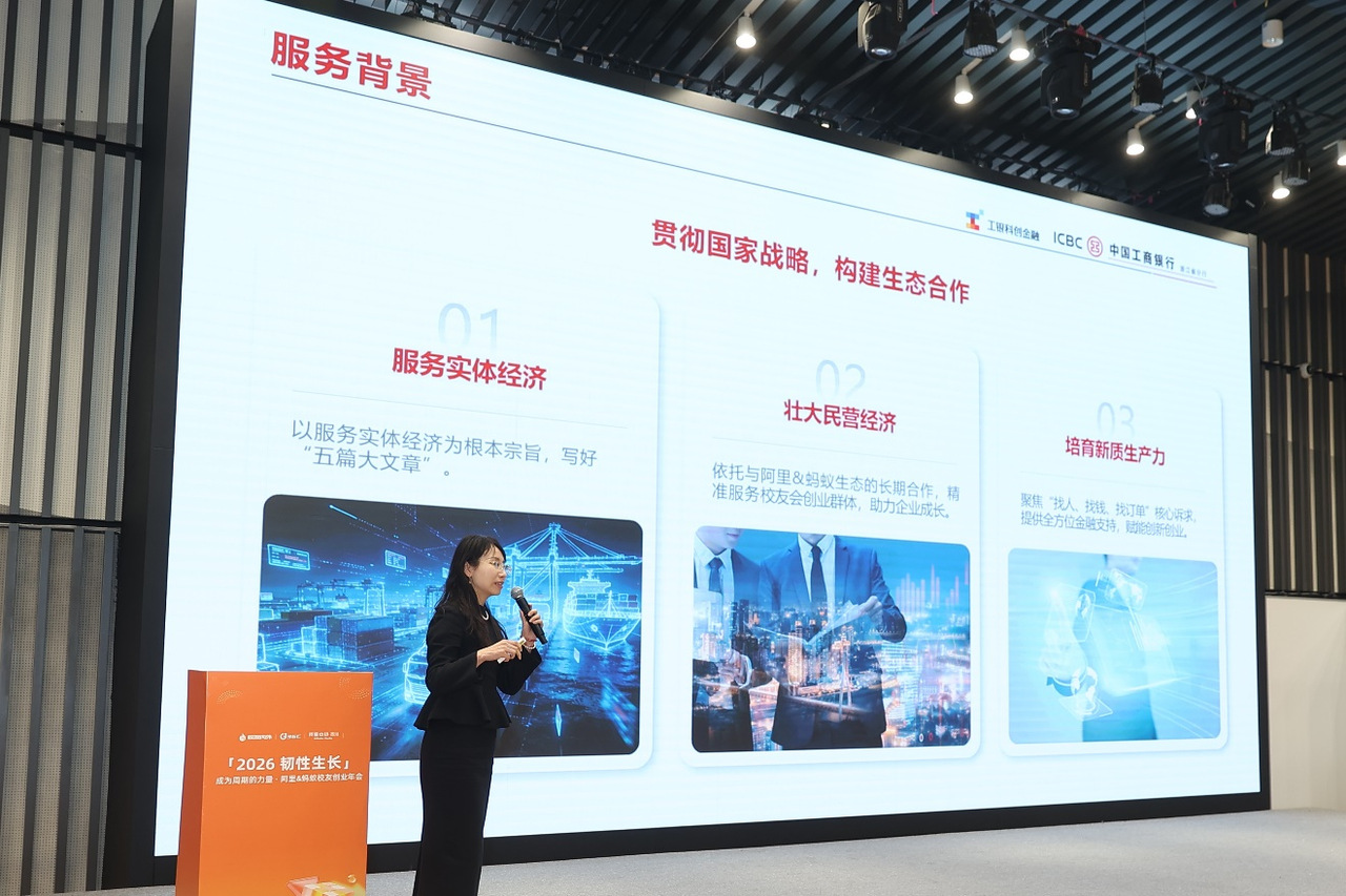 近日,工行浙江省分行以“独家银行合作伙伴”的身份,与阿里巴巴&蚂蚁校友创业社区-校友内外达成年度战略合作,并应邀出席“2026韧性生长”阿里&蚂蚁校友创业年会,重磅发布专属金融服务方案。