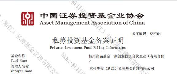 近日,杭州科创集团全资子公司——杭科华樟(浙江)私募基金管理有限公司(简称 “杭科华樟”)接连迎来两大里程碑事件——1月16日顺利通过中基协审核,成功完成私募基金管理人登记;1月29日,首支基金“杭州润苗基金一期创业投资合伙企业(有限合伙)”(简称 “润苗基金”)同步完成中基协备案,标志着杭科华樟已从资质合规阶段正式迈入“资质+项目”双落地的实质运作新阶段。