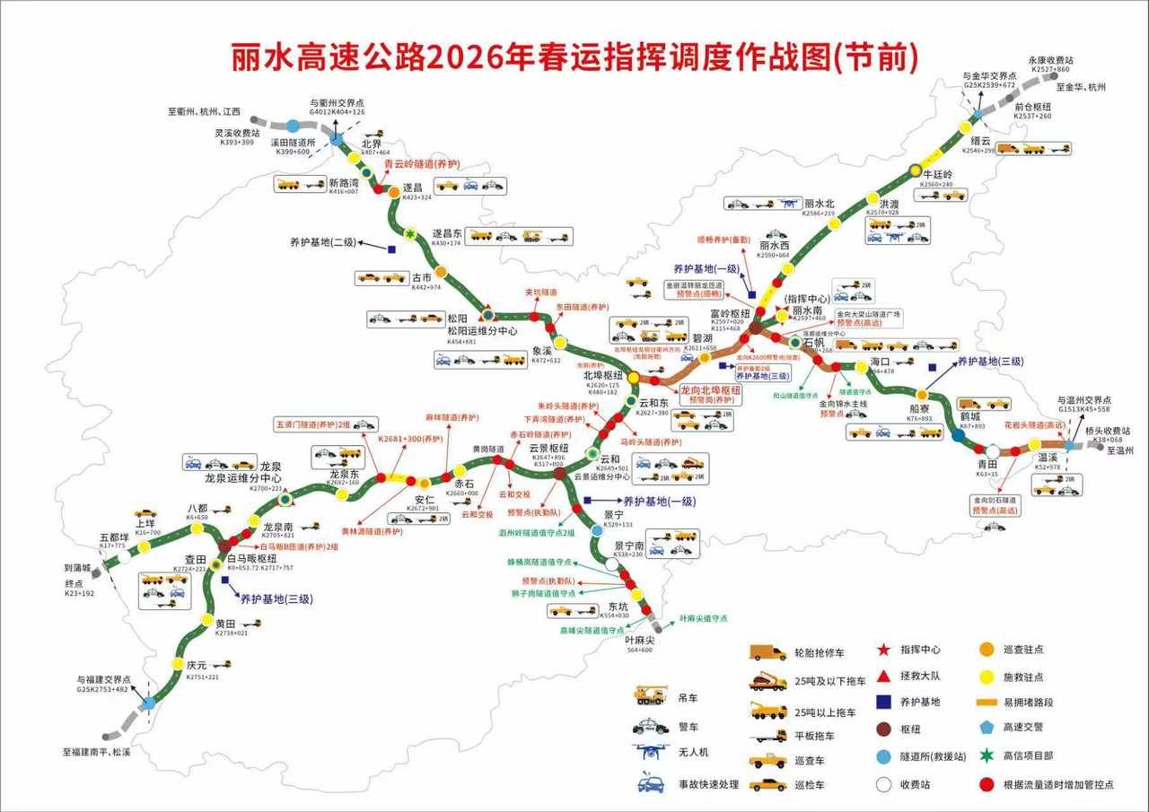 对丽龙转金丽温C匝道等关键节点的通行效率进行优化,以缓解节后返程压力。