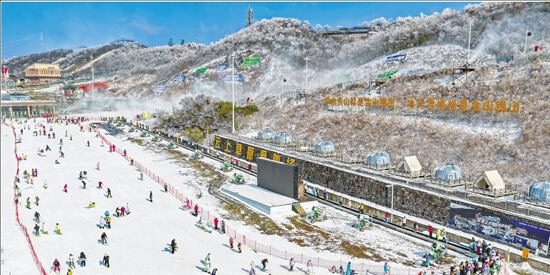 12月25日,雪后初晴,安吉县山川乡云上草原滑雪场迎来客流小高峰,单日客流量达4000多人次。
