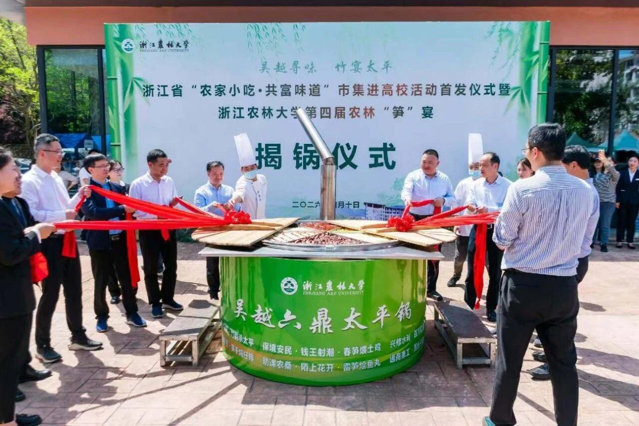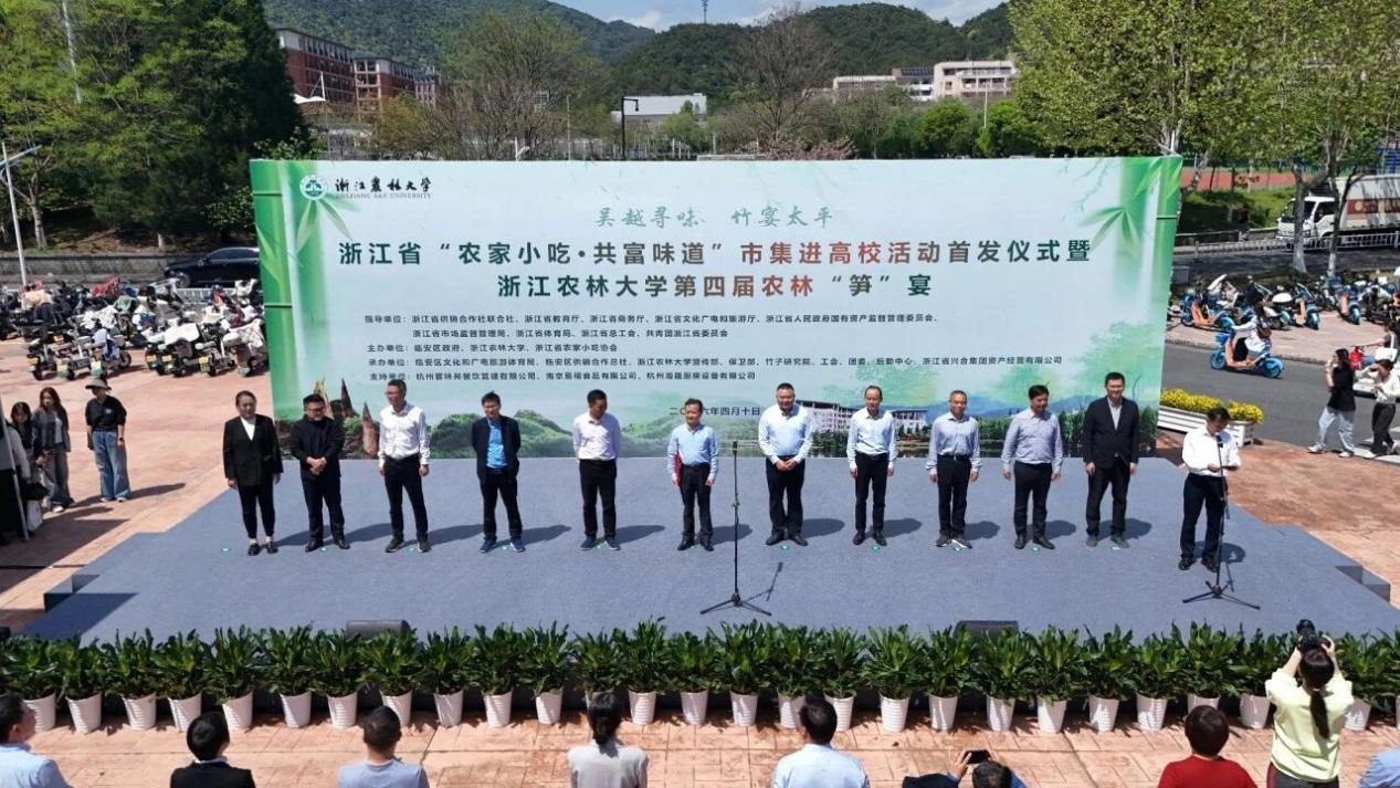 4月10日,由省供销社指导、省农家小吃协会联合浙江农林大学、杭州市临安区政府共同主办的浙江省“农家小吃·共富味道”市集进高校活动首发仪式暨浙江农林大学第四届农林“笋”宴,在浙江农林大学东湖校区举行。