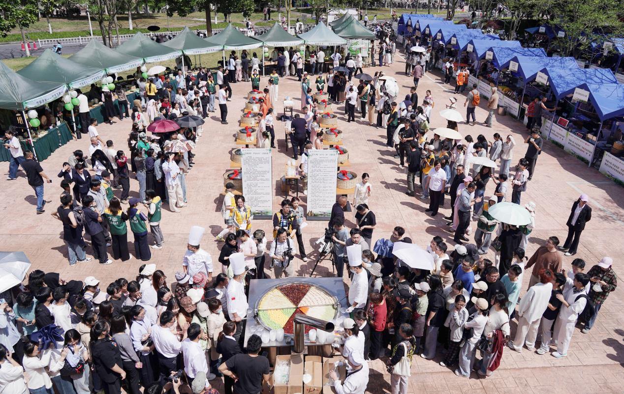 活动现场,省农家小吃协会积极整合全省农家小吃资源,组织40余个特色展位,涵盖现场制作展示、成品展销及非遗美食限定集市。