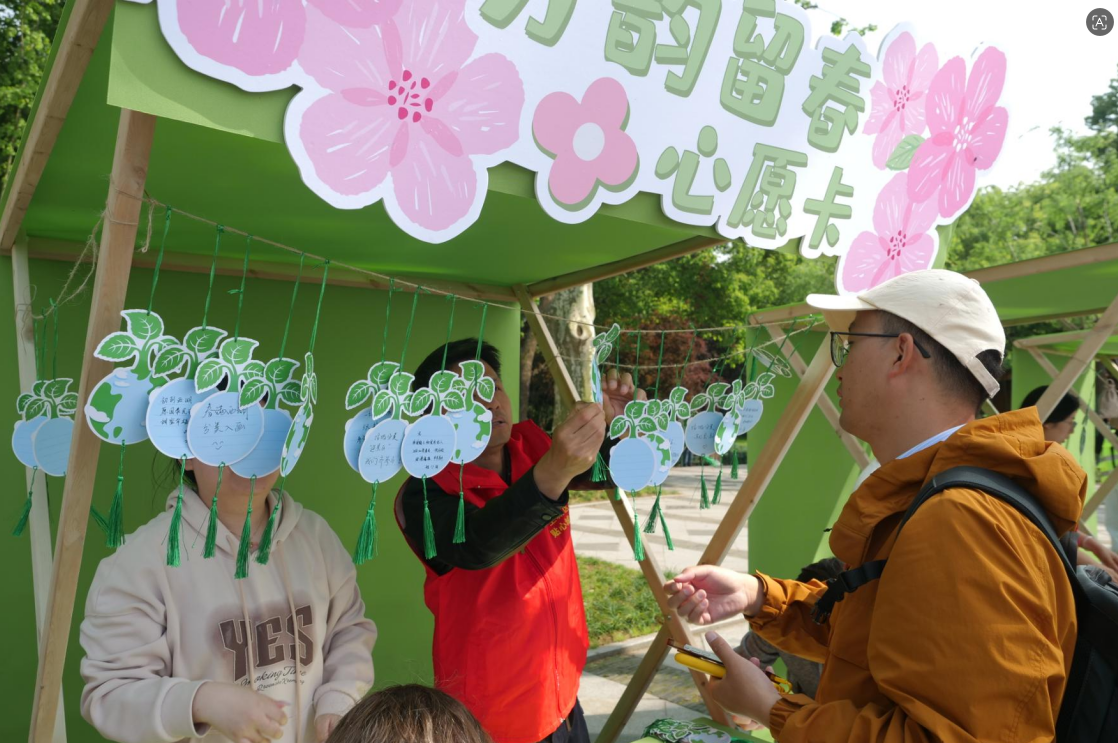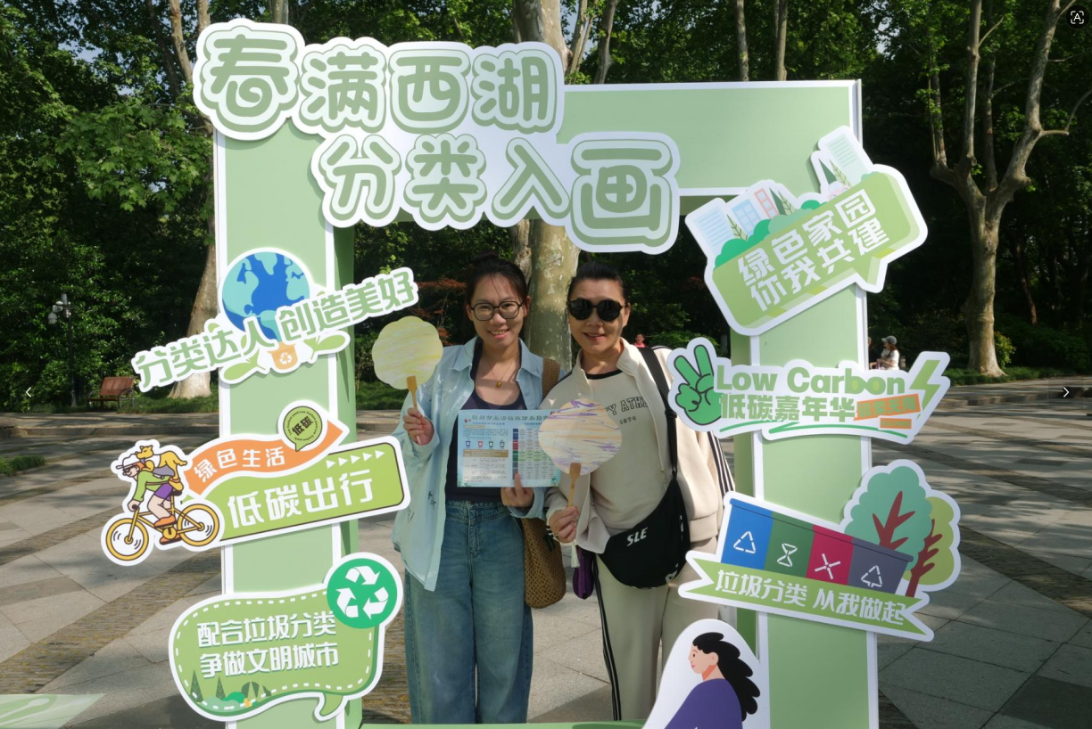 活动中,“拉风·心愿绳”互动区域成为温情的亮点,游客在心愿卡片上写下自己的垃圾分类心愿,系挂在心愿绳上,传递环保正能量。“春韵分类·打卡驿站”融合柳浪闻莺景致与环保元素,设置主题背景板、分类标识道具等打卡场景,游客拍照发布社交平台即可领取环保小礼品,在记录西湖春色的同时传递垃圾分类理念。