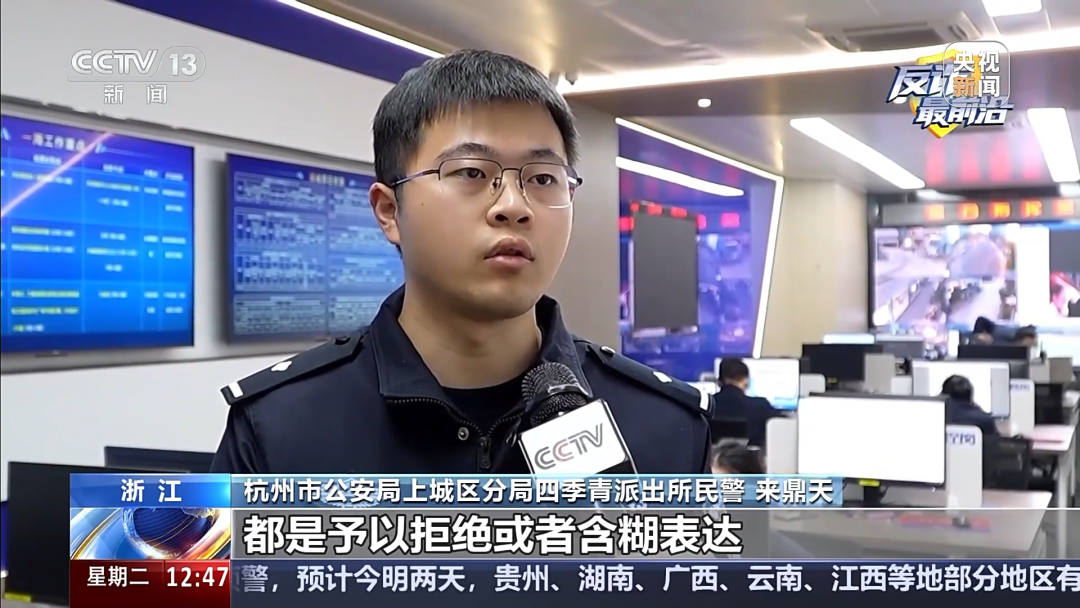 杭州市公安局上城区分局四季青派出所民警 来鼎天:何大姐非常不配合,对我们提出的一些问题也是予以拒绝或者含糊表达,我们也是找出了一个突破口,就是既然对方提的是美元兑换人民币,他这5000块钱是所谓的手续费,那我们就带她去银行看看,最后银行跟她提出来说,这个是不需要这笔所谓的手续费的,这时候,她才慢慢愿意接受我们的劝阻。