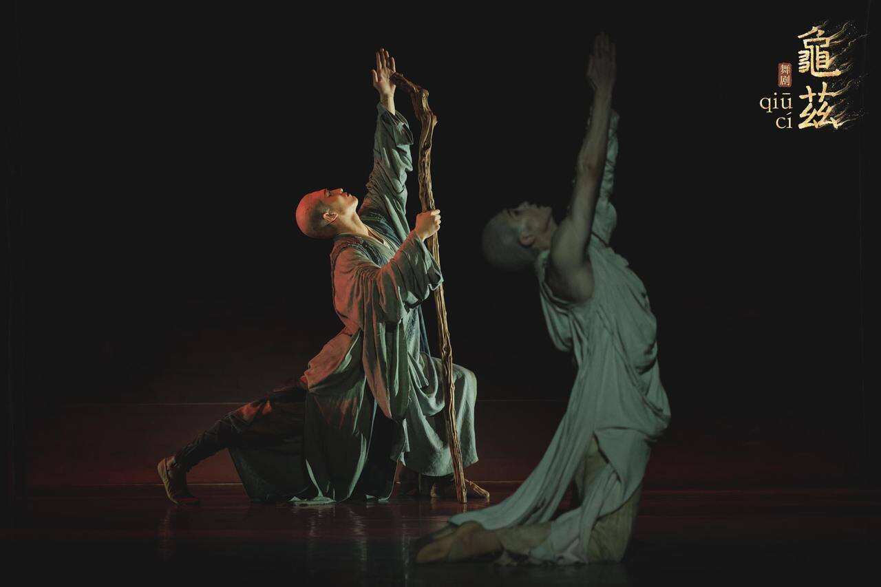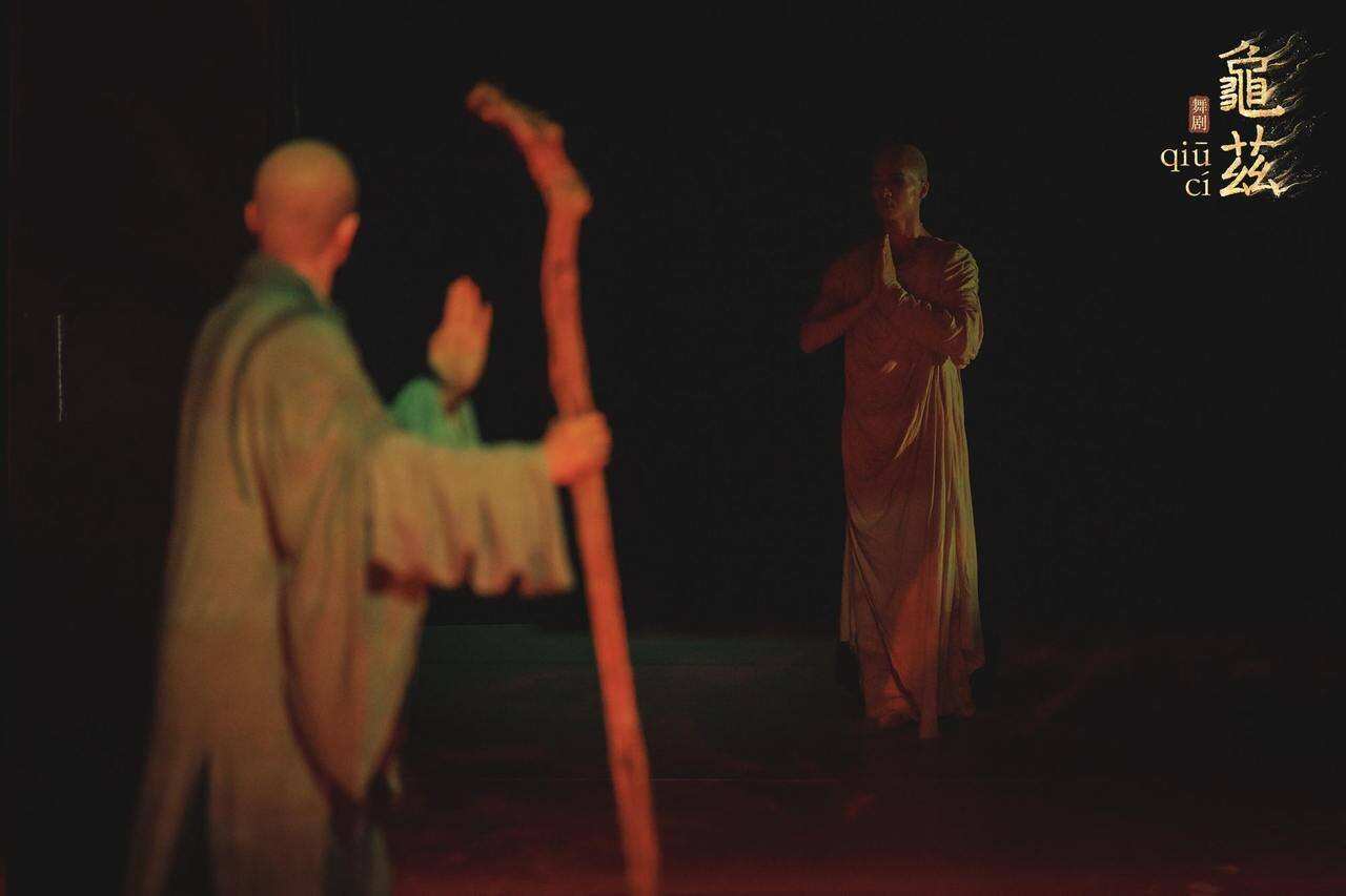 “玄奘西行和鸠摩罗什东行的路线高度重合,这为我们提供了丰富的创作灵感。”王彭说,《龟兹》利用舞台空间,让玄奘在一次次回望鸠摩罗什的生命轨迹中,坚定了文化传播的共同信仰,并以双人舞表现共通的使命感。
