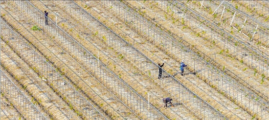 12月8日,余姚市黄家埠镇横塘村农民在修剪葡萄。初冬时节,该市农民抢抓农时,有序开展冬季农业生产。