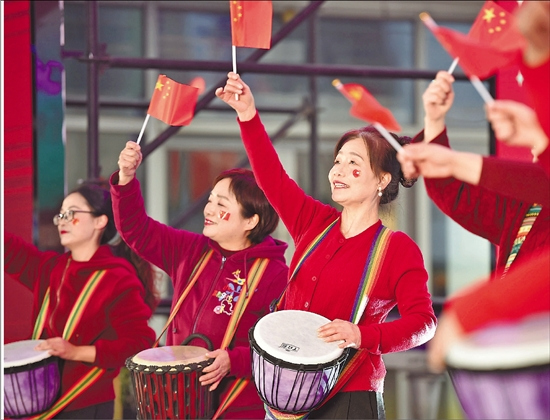 1月11日,杭州市西湖区社区学院文三教学点的学员,在文三数字生活街区迎接新年。该学院2025年面向社会公众开设了书画器乐、声乐戏曲等类别近600门课程,