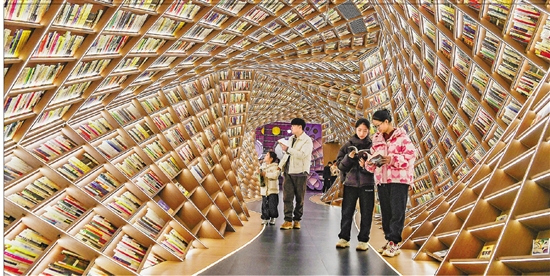 2月12日,在永康市大司巷特色文化街区钟书阁书店,不少中小学生趁着寒假走进书店阅读、打卡,在浓浓的书香中迎接春节、乐享假期。