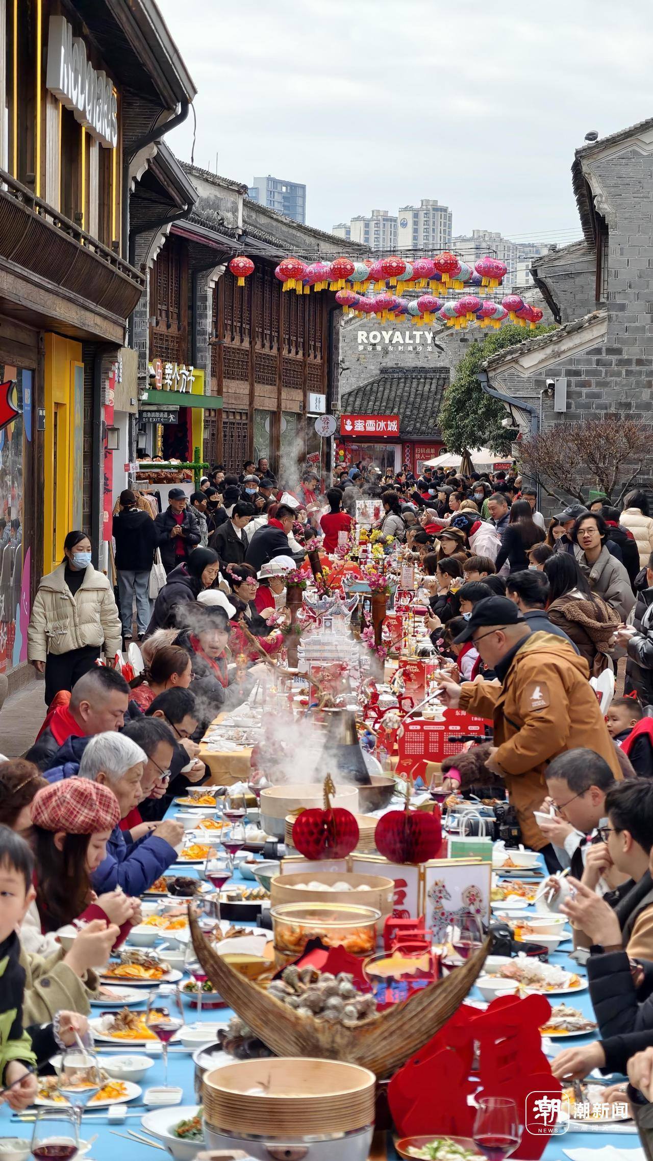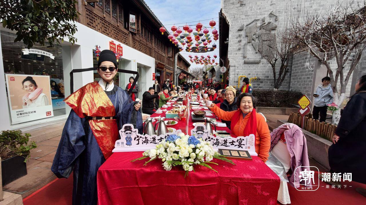 202.6米长桌,350余道宁波特色佳肴。近日,“来宁波·过大年”2026宁波文旅新春系列活动之长桌宴在宁波海曙南塘老街开席。市民游客“吃大席、逛大集、看大戏”,共赴一场承载传统年俗、融汇多元体验的新春文化盛宴。