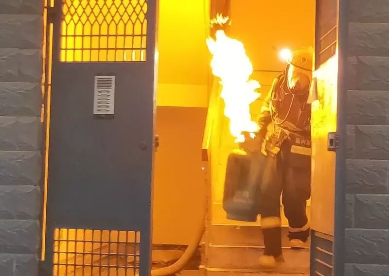 8月25日下午6时01分,嘉兴经济技术开发区阳海景怡北区有一6层居民楼液化石油气罐着火。接警后,嘉兴市消防救援支队嘉北中队迅速前往救援。当时,火焰烧烤罐体,极有可能发生爆炸,紧急时刻,消防员郭孟宇从6楼厨房徒手拎出“火雷”至一楼,成功化解危机。