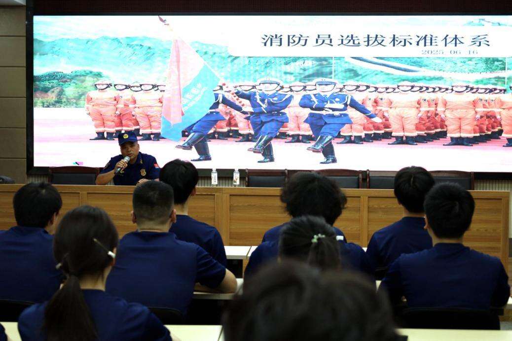 6月17日,浙江宇翔职业技术学院的报告厅里座无虚席。蔡文军团队用PPT展示消防员救援瞬间:“从新训队员到攻坚骨干,只要肯努力,两年就能成长为业务能手。” 针对 2025 年消防员招录政策,团队详解年龄限制、学历要求和报名流程,重点介绍高校毕业生在岗位选择、体能测试中的优待政策。