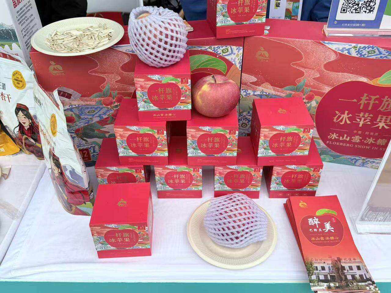 目前,这一创新模式已取得显著成效。品牌带动40余户果农建立稳定供货体系,将冰糖心苹果、鲜榨果汁、苹果干等特色产品销往内地各省市,让6.5万亩核心产区果品通过展销直连内地市场,线上订单超3200单,助力当地农产品网络销售额突破40万元。