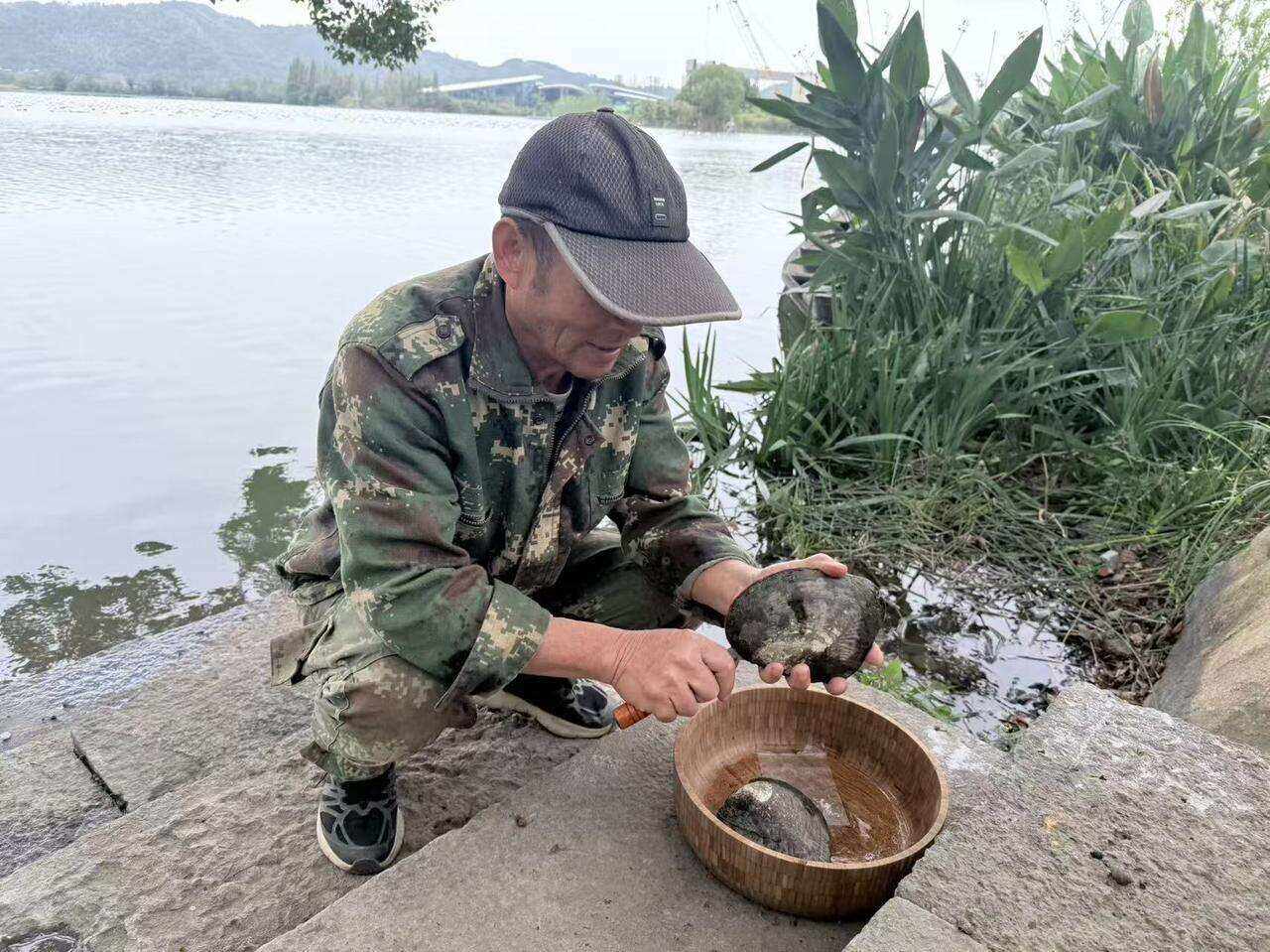 在小山漾淡水珍珠生态养殖基地的池塘旁,科研工作者吕瑛轩正在监测三角帆蚌的生长情况。“这里养育着几十种三角帆蚌,包括野生品种和不同区域的种质资源,为培育新品种提供了丰富的遗传基础。”吕瑛轩主要负责珍珠蚌育种工作,包括水质检测调控、母蚌生长情况监测以及季节性寄苗工作,对三角帆蚌习性“如数家珍”,“三角帆蚌繁育具有鲜明季节性,春蚌3-5月繁育,长势较好;秋蚌6-7月繁育,生长稍慢。我们现在主推‘浙白1号’品种,它的珍珠更白,生长也更快。”
