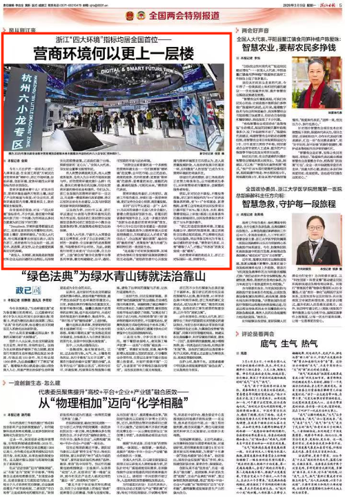 有人称赞亲清政商关系,有人点赞政务服务,也有人为公平的市场规则鼓与呼。好的营商环境究竟什么样?代表、委员们有着各自的见解,但优化营商环境的路径却是相通的。他们认为,浙江全面领先的营商环境并非一日之功,而是靠一整套系统化改革逻辑、持之以恒的法治化生态建设,以及与时俱进的创新举措共同铸就的。