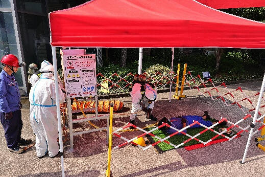 演练现场,警报声响起后,演习人员迅速从办公区域疏散。每个人都弯腰掩住口鼻,沿着预设路线撤离至安全区。应急抢险组扛着装备冲进演习区进行有限空间救援并联动消防力量展开协同作业。