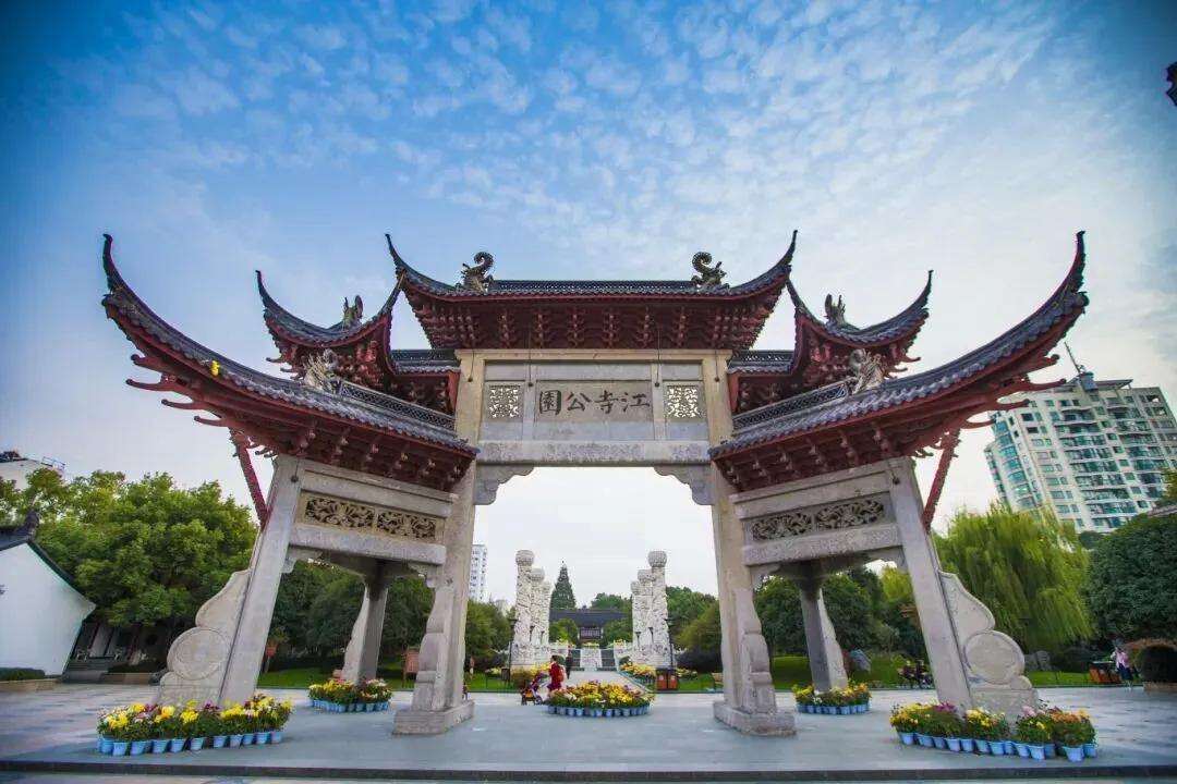 踏入江寺公园,仿佛走进一幅淡雅的水墨长卷。古刹静立于闹市之中,白墙黛瓦,飞檐翘角,在秋日晴空下显得格外庄重。