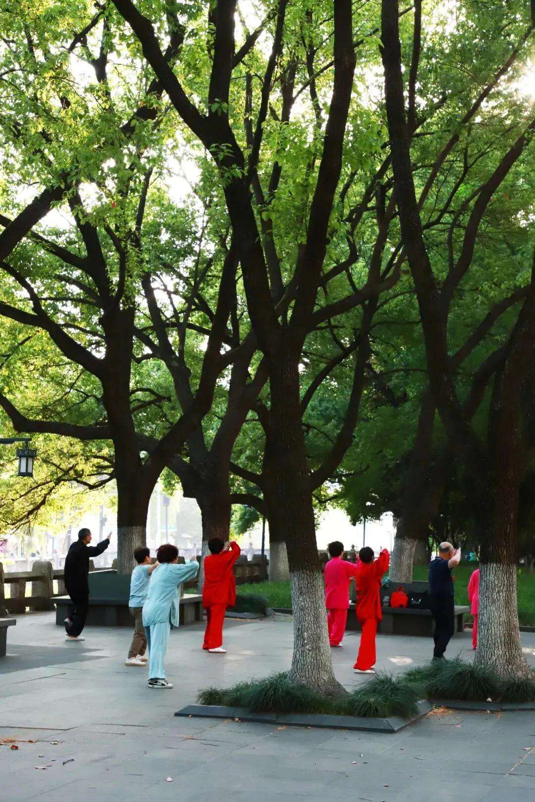 漫步于此,不必急于去向何处。晨光熹微时,这里是活力的舞台:练太极的老者动作行云流水,跑步的年轻人充满朝气,鸟鸣声与流水声奏响晨曲。黄昏时分,则换了温情的主调:携手散步的夫妻,推着婴儿车的父母,还有凭栏垂钓的闲适客。