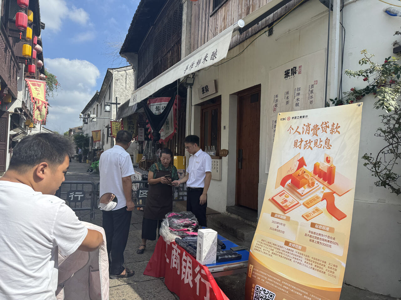 浙江在线10月11日讯(通讯员 清辉)仓桥直街是绍兴古城保护最精致的地方,近日,工行绍兴越城支行营业室在充满历史韵味的仓桥直街设点,开展国家消费贷款贴息政策宣传活动,旨在让更多市民了解并受益于这一利好政策。