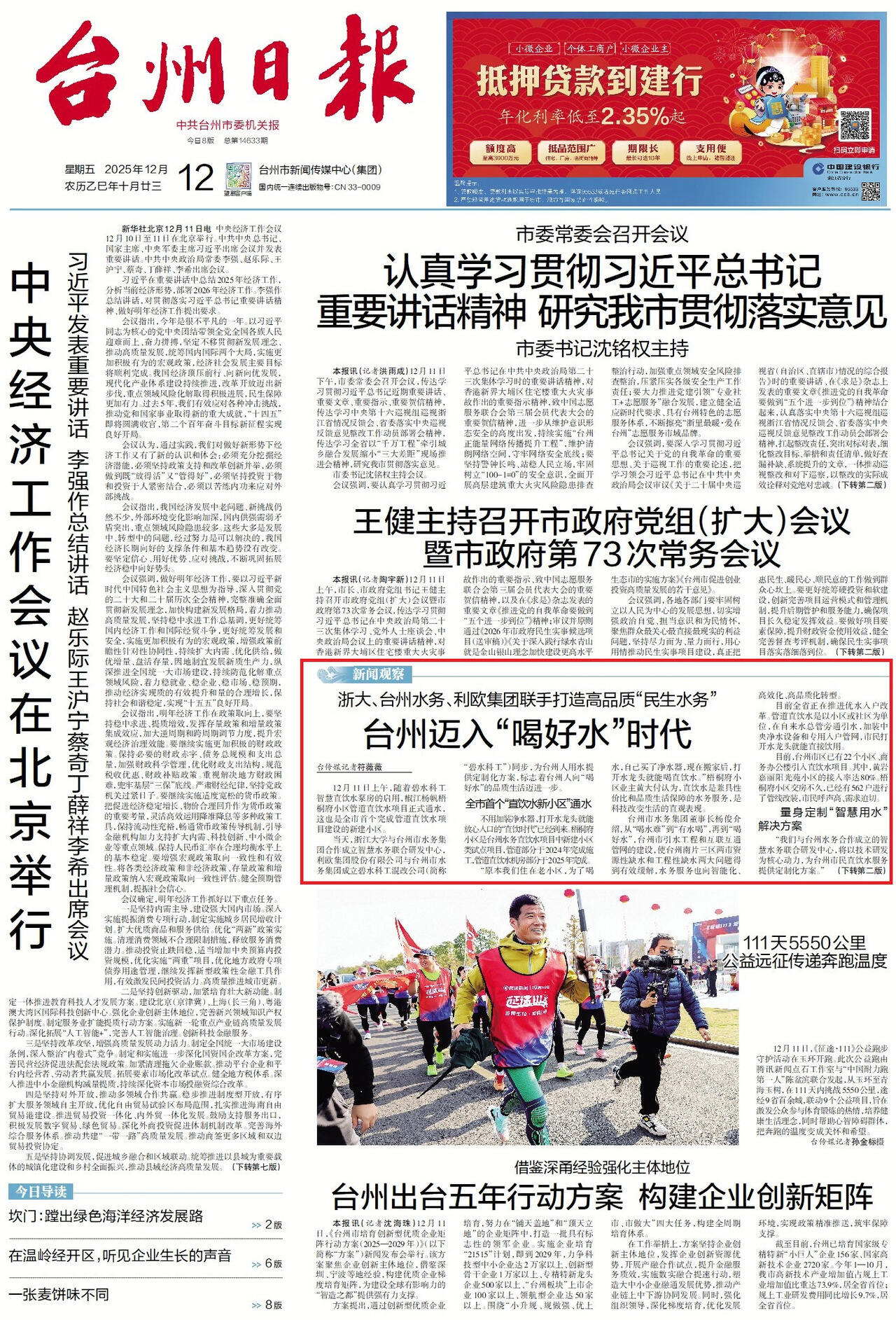 此番浙江大学、台州水务和利欧集团牵手,也将为台州建设高品质饮用水标杆城市和智慧水务示范城市提供坚实支撑。