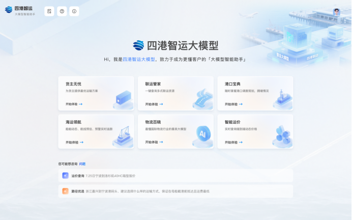 针对物流行业存在的数据孤岛、响应迟缓、协同效率低等痛点,“四港智运”大模型推出货主无忧、智能运价、海运领航、联运管家、港口宝典、物流百晓等六大模块,分别支持智能运输方案生成、动态报价、船舶追踪预警、多式联运调度、集卡路径优化及行业智能问答等功能。