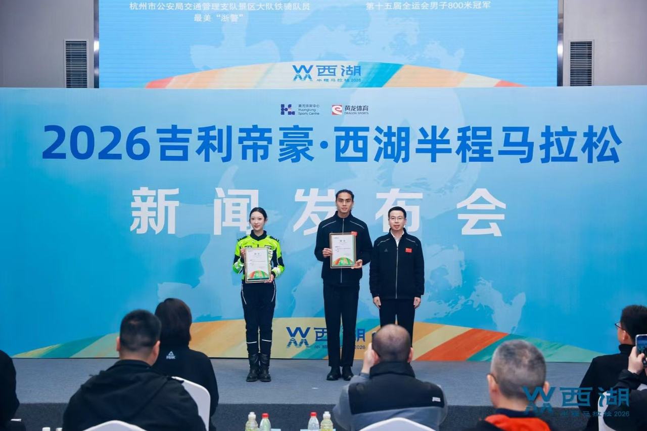 2026吉利帝豪·西湖半程马拉松新闻发布会在黄龙体育中心举行