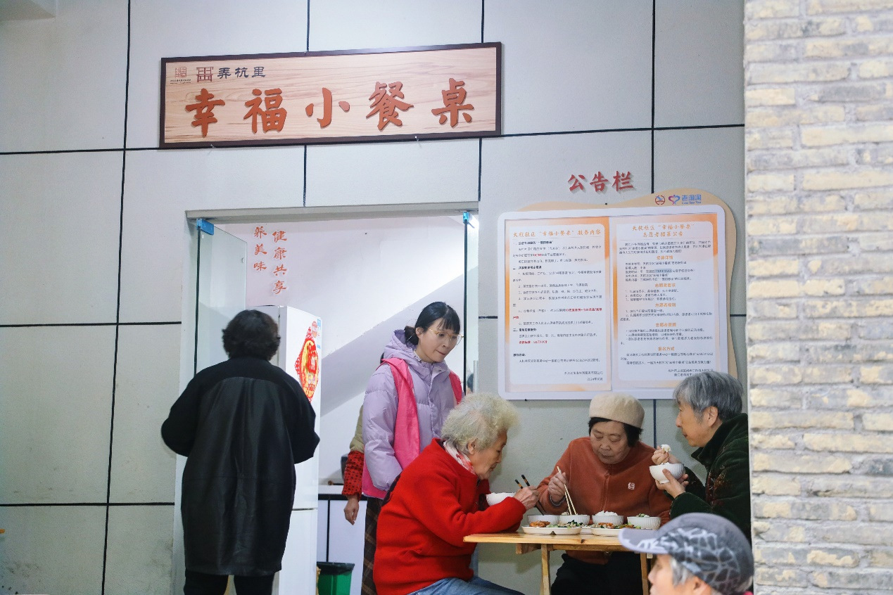 特别值得一提的是,“弄杭味道”幸福邻里餐厅,堪称小区里的幸福就餐样板经验。不但老年人可以按年龄享受就餐补贴,百岁老人可以完全免费,还探索全年龄友好模式,推出儿童营养菜谱,“深夜食堂”等,近期还推出了10元一荤两素的“小哥套餐”,专为新就业群体服务,真正诠释了公共服务提升居民幸福感的使命,让老社区也能在点点“小幸福”中焕发新风貌。