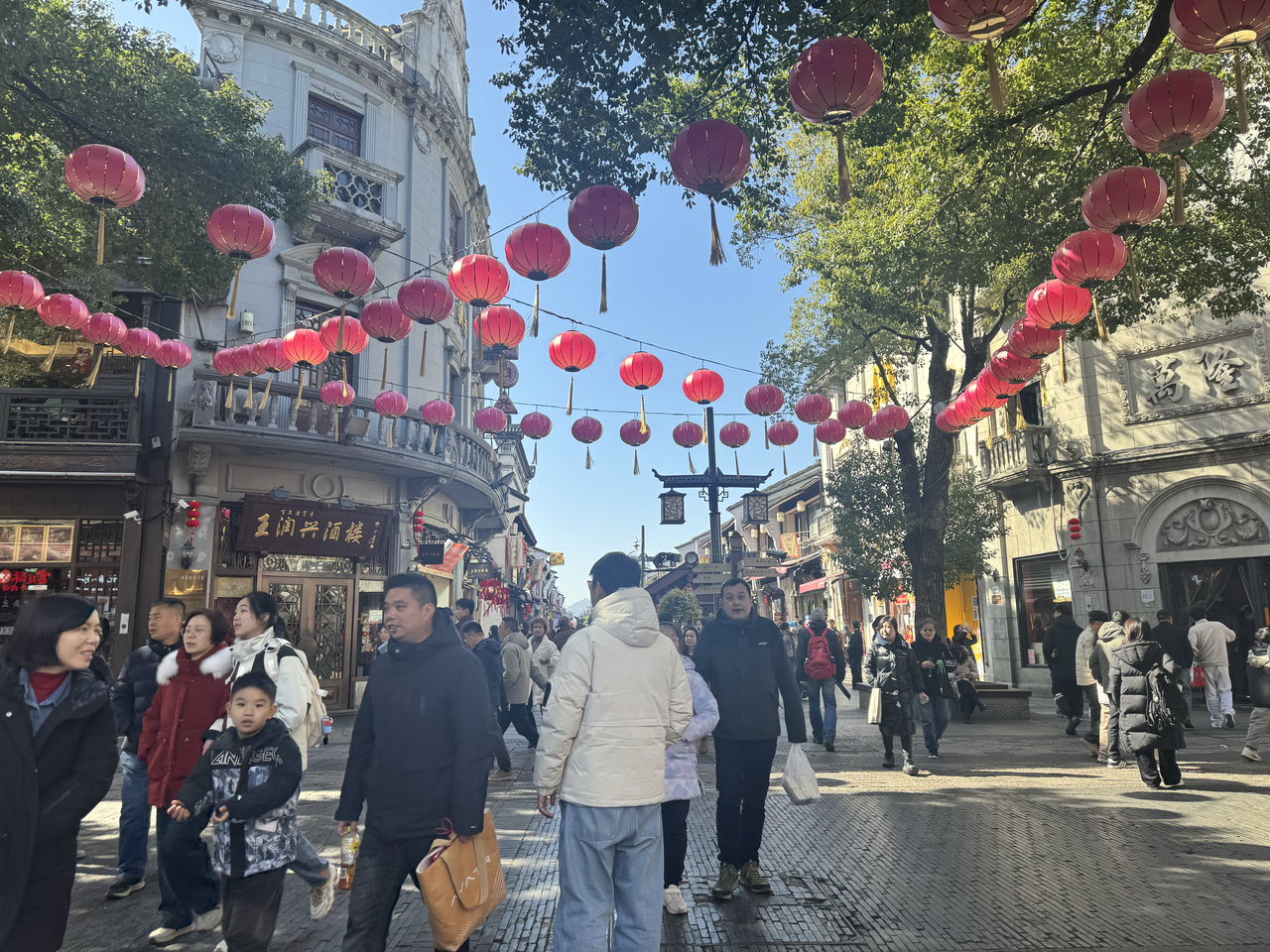 “一部清河坊 半部杭州史”。寻味杭式新春,杭州清河坊历史街区是不错的选择。1月29日,记者走进河坊街,只见整个街区都已换上了新年“新装”。鼓楼、吴山广场、南宋御街、大井巷、河坊街、打铜巷等历史街巷张灯结彩,年味十足。