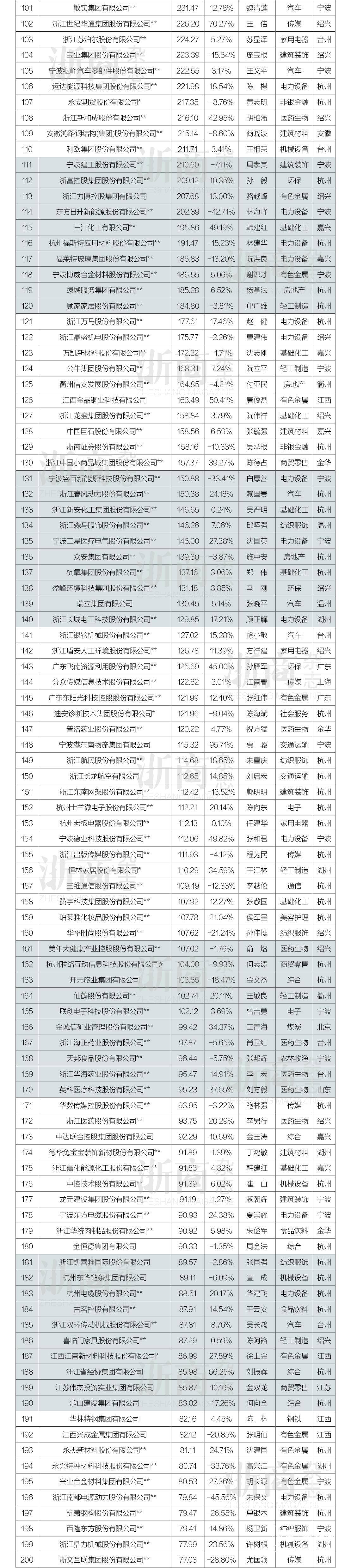 榜单数据来源于企业自行申报、上市公司年报、各地工商联和全国各地浙江商会与权威媒体的报道。其中,企业、各地工商联和浙江商会申报比例为22.8%,上市公司年报76.8%,其余数据皆由《浙商》杂志从独立渠道获得。