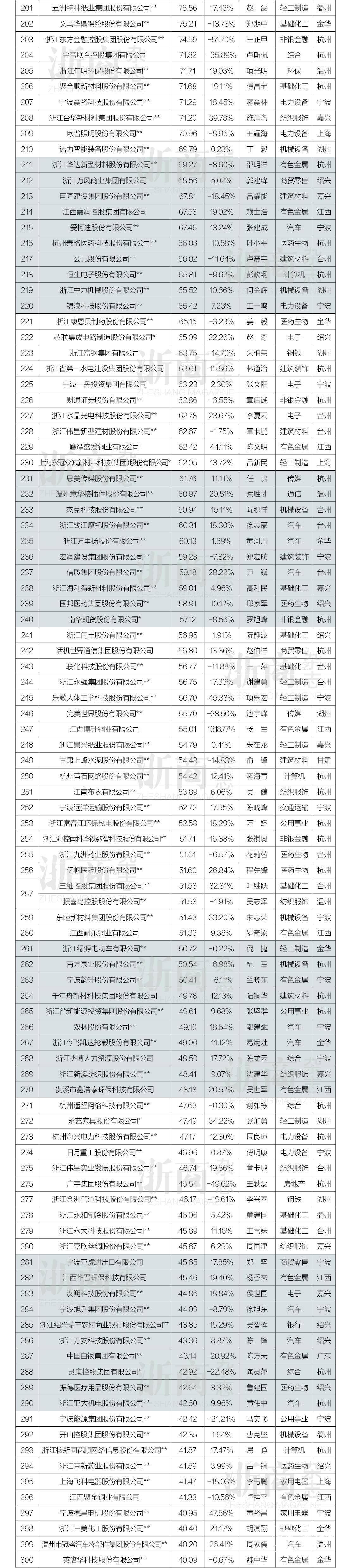 入榜企业的标准为浙商在全国范围内经营的企业或在浙江创业的新浙商经营的企业。为更统一地以“集团”为口径对榜单进行排名,我们将其旗下公司作了合并计算。所以,一些公司参与了申报且营收高于入围门槛,但未入榜,这类企业被统计进了集团公司数据。