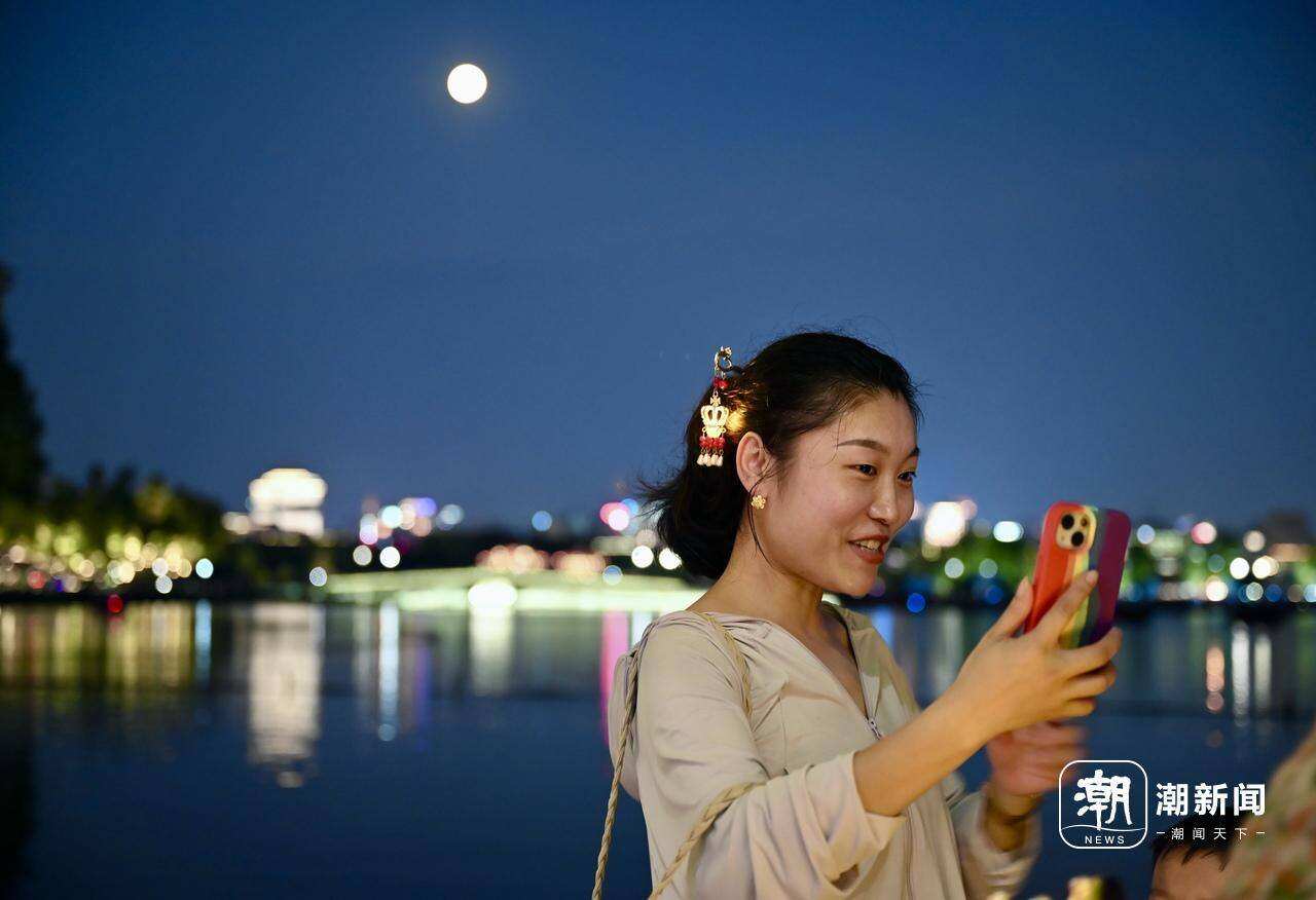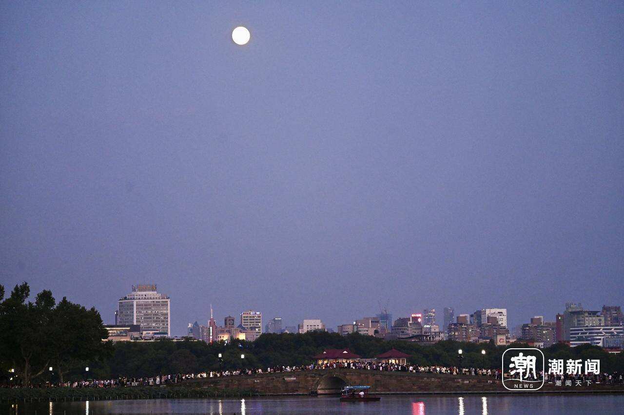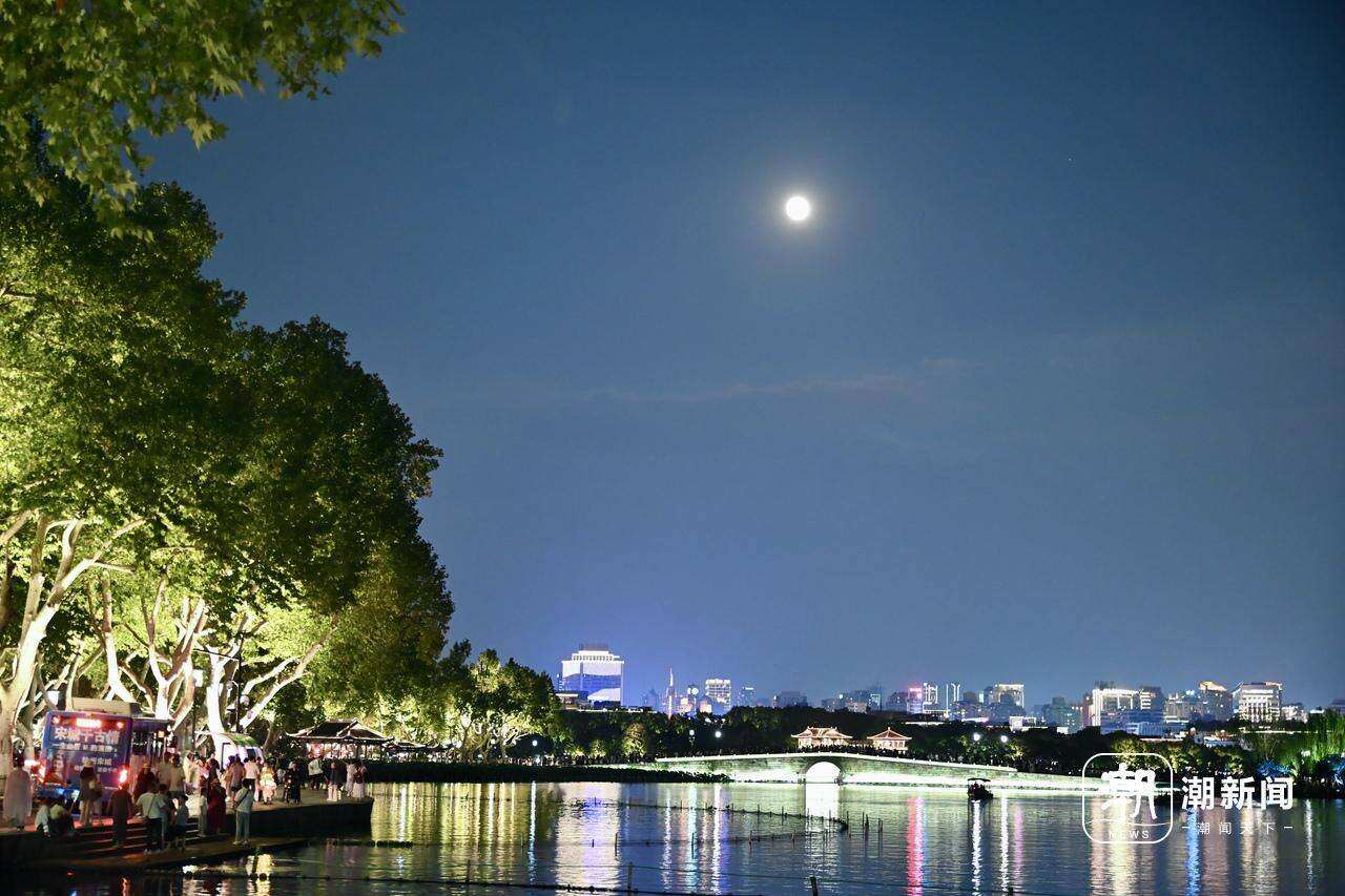 10月6日,中秋佳节,华灯初上,杭州西湖边已聚满了赏月的市民与游客。人们饭后不约而同地漫步至此,同赏一轮明月,共度团圆之夜。