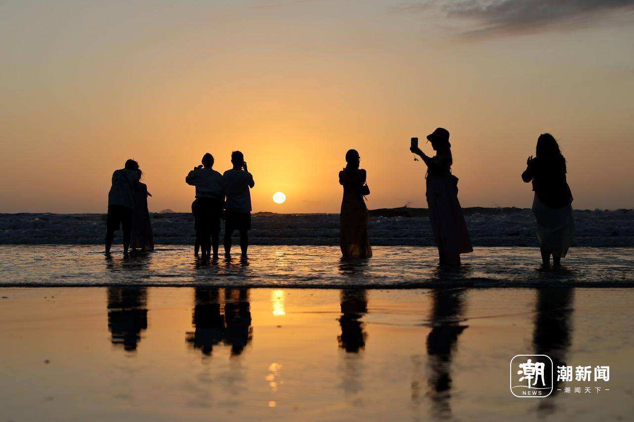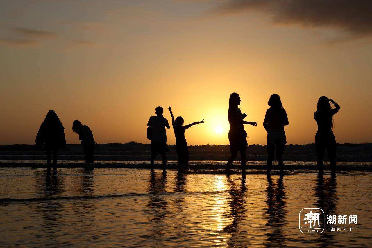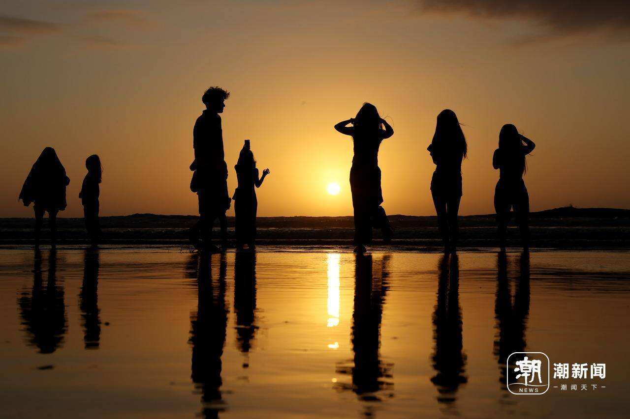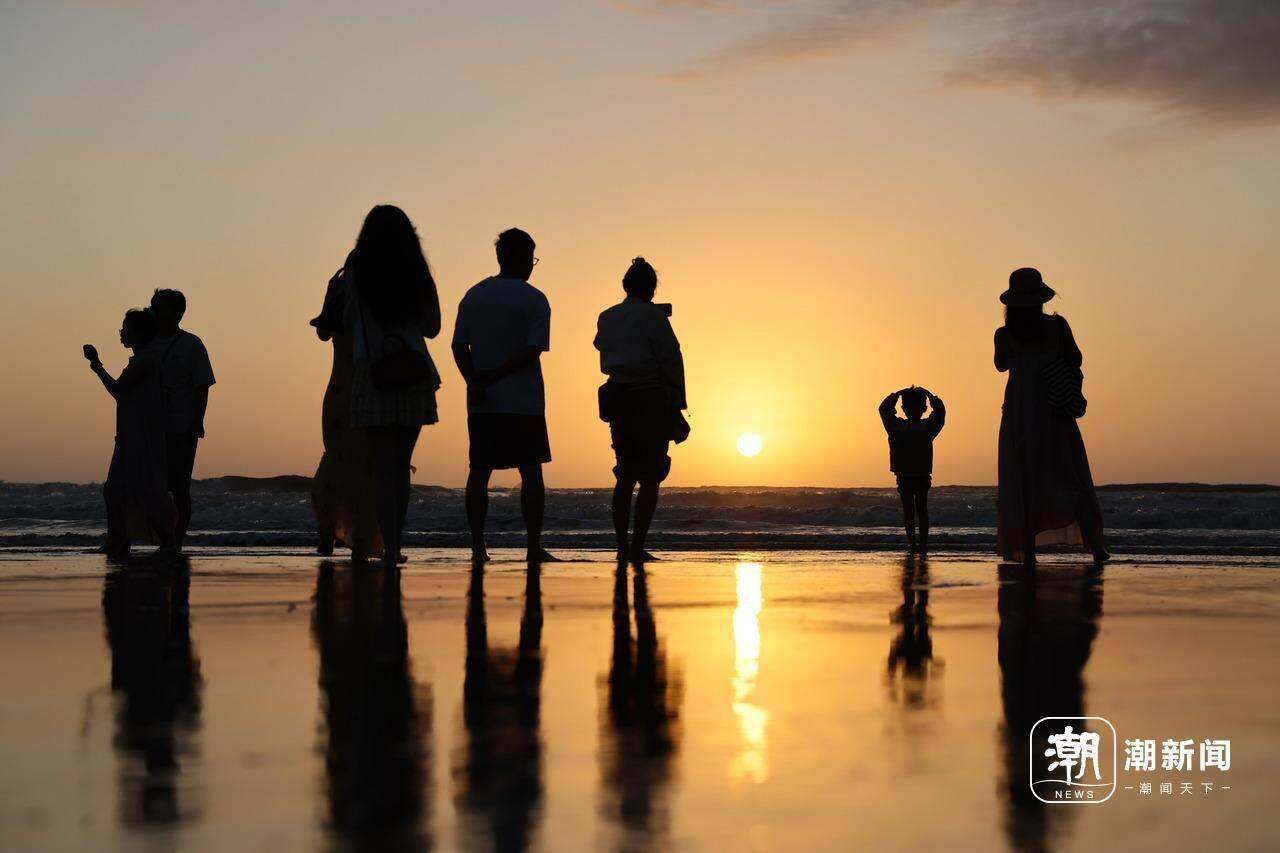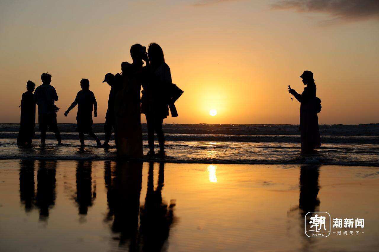 10月10日清晨,浙江持续高温,舟山朱家尖东沙海滨公园不少游客一早在海滩观看日出,游人不同造型的剪影与琥珀色晨光构成电影感画面。受副热带高压控制影响,预计明天后天全省大部地区日最高气温可达35-37℃,浙西南局部38-39℃。
