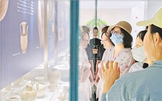 距离此地100多公里的温州朔门古港遗址旁,已有一座新布置的临时展示馆。走进馆内,“一片繁华海上头——温州朔门古港遗址考古成果展”正在展出。温州商学院的学生们正在馆内参观。“古港遗址的出土文物见证了古代海上丝绸之路的繁荣。”一名学生告诉记者。