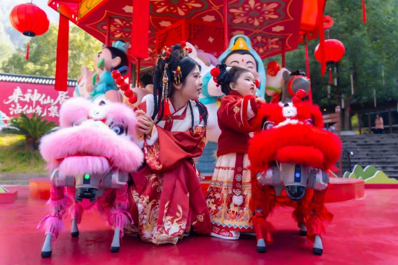 依托5G高速传输、北斗高精度定位、AI视觉识别、智能语音交互等核心能力,这些5G机器狗化身“多面能手”,全方位赋能新春文旅服务:面向亲子家庭、年轻游客等群体,机器狗身披喜庆狮装,化身“新春福使”与游客打卡互动;针对景区登山路段多、游客体力消耗大的特点,机器狗变身“登山助力员”,协助运送小型行李、饮用水等物资;同时,作为“智能安全宣讲员”,它能循环播报景区安全须知、路线指引,解答游客咨询,缓解工作人员的服务压力。