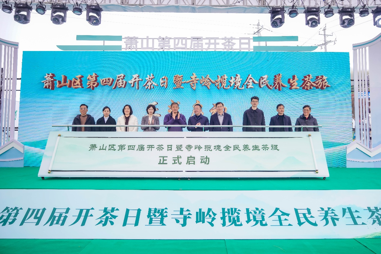 随着现场倒计时声落,现场嘉宾共同启动萧山区第四届开茶日暨寺岭揽境全民养生茶旅,大屏光影闪动,宣告着义桥茶文旅发展的新征程正式开启。活动现场还设置了公益茶铺、茶周边展示区,摄影打卡、茶旅体验同步开启,嘉宾们漫步茶山,在茶香中感受义桥的山水之美与乡村之韵。