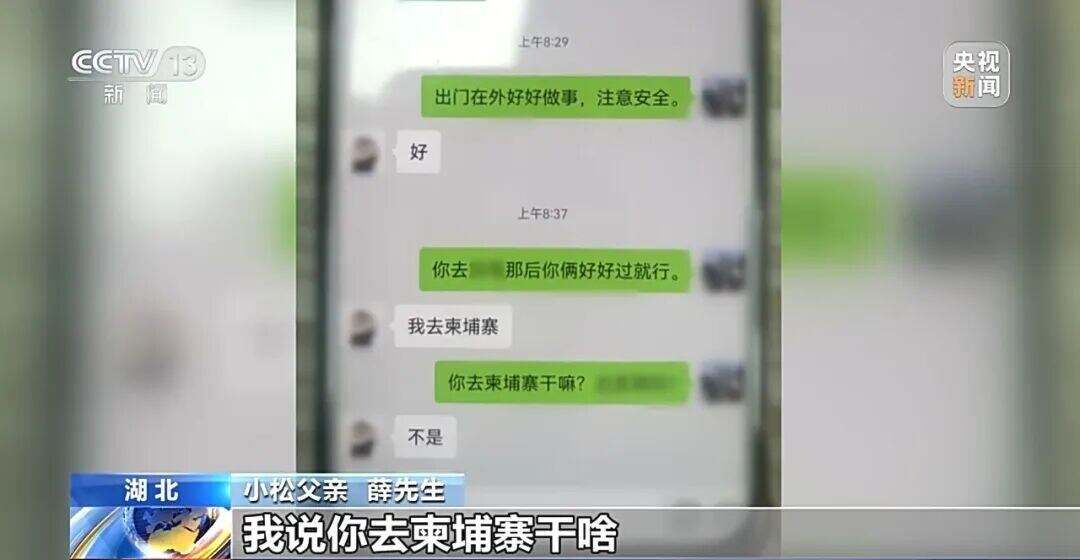7月6日早上,湖北随州的薛先生突然收到了儿子小松发来的微信,儿子告诉他,自己已经在高铁上了。起初,薛先生并没有察觉到异常,以为儿子可能是去找在厦门打工的儿媳妇。然而,小松接下来的回复,却让薛先生顿感不妙,一下子紧张了起来,他24岁的儿子突然说自己要去国外工作,并称工作正规,待遇也很好。
