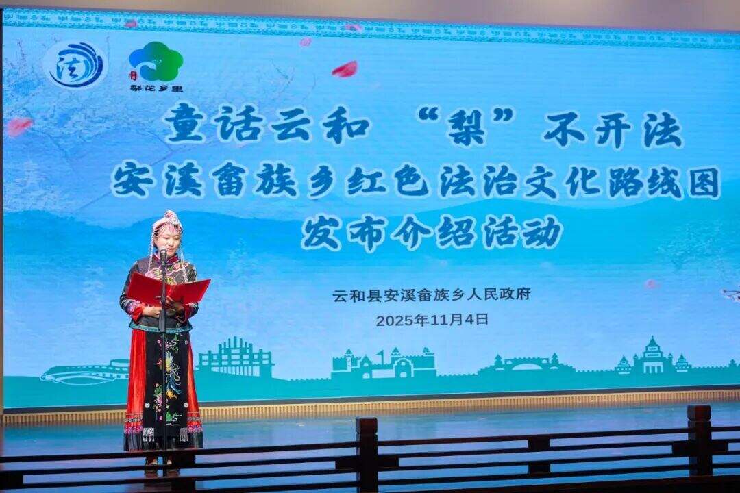 晚会现场发布了云和县安溪畲族乡红色法治文化路线图”,清晰展现了12个核心体验点位,将法治文化与当地特色深度融合。路线图既串联红色历史印记,让观众重温革命先烈的初心坚守,又融入雪梨产业发展,展现乡村振兴中的法治护航,还嵌入畲族民俗风情,让民族文化与法治精神碰撞融合,构成一次可感、可学、可体验的完整红色法治文化体验。