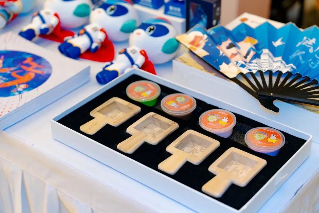 还没踏入主会场,走廊展区已率先铺陈开法治文化的气息。桐乡法治漫画大赛、秀洲法治农民画全国大赛、海盐“三毛学法”漫画大赛历年获奖作品,以缤纷的色彩或灵动质朴的笔触,勾勒出嘉兴法治文艺创作的多样风貌。另一边的普法文创展示区,圆滚滚的普法玩偶,印刷着法治小故事的折扇,还有印刻着法治标语的糖糕板模型,让法律条文化作可触可感的生活小物。循环播放的历届法治动漫回顾及丰子恺法治漫画视频,在光影中诉说着法治精神的传承与创新,让观众们全方位感受法治文化的多样魅力。