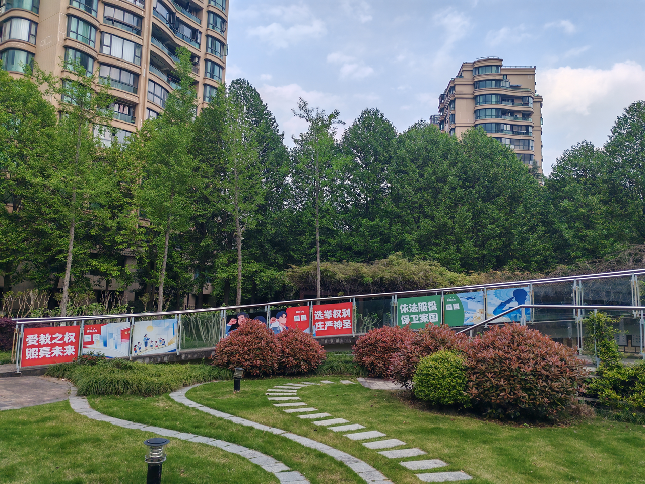 春日的文化带,一步一景皆法治。滨江区普法主题公园内,晨练的市民漫步在“宪法之光”漫画长廊,一幅幅生动的漫画,解读着与出生、入学、就业等场景密切相关的法条。宪法宣誓墙上刻写着庄严的宪法宣誓誓词,传递着宪法精神。樱花里草坪公园内,民法典“天空之镜”倒映着蓝天与江景,矗立一旁的“民法典伴一生”系列合影框,记录了出生、成长、成家、立业、颐养五个阶段的民法典权利保障。沿途的花草牌更是成了“法治小课堂”,“孕妇可以被辞退吗?”“微信聊天记录能成为法庭证据吗?”这些老百姓最关心的问题,都能找到通俗直白的答案。