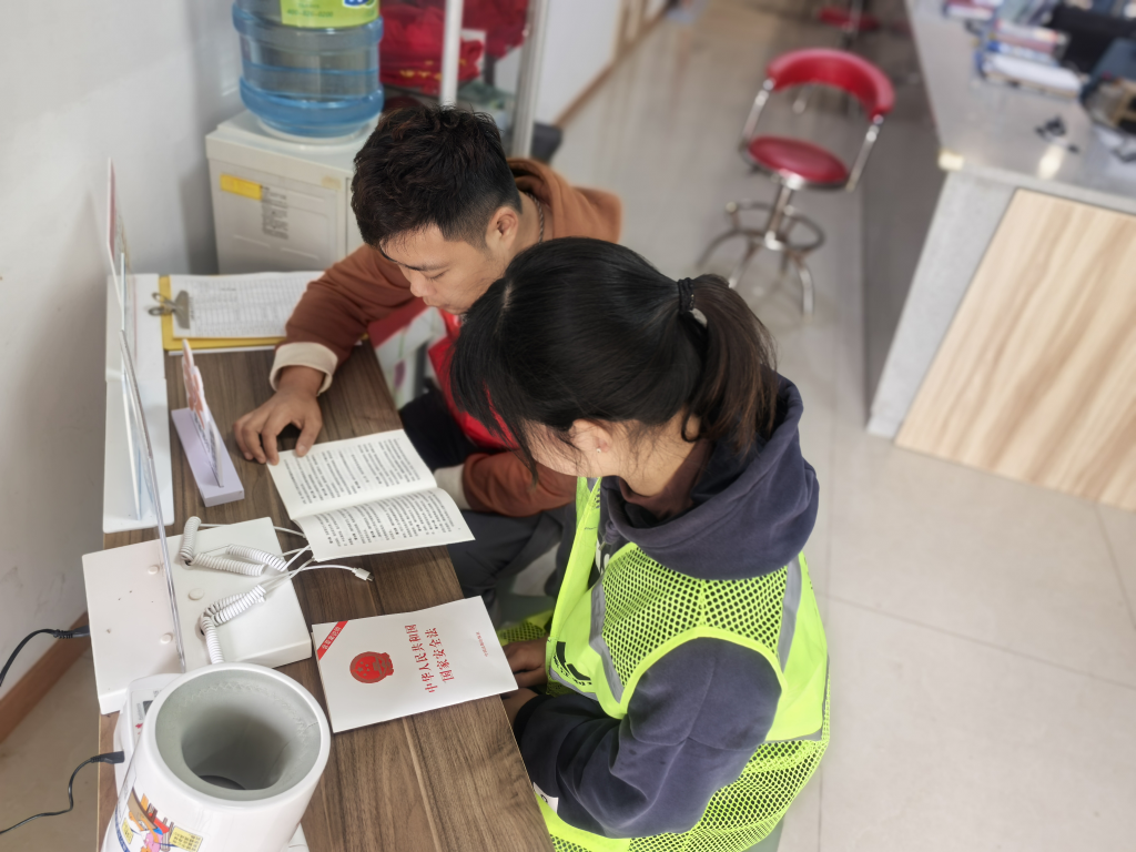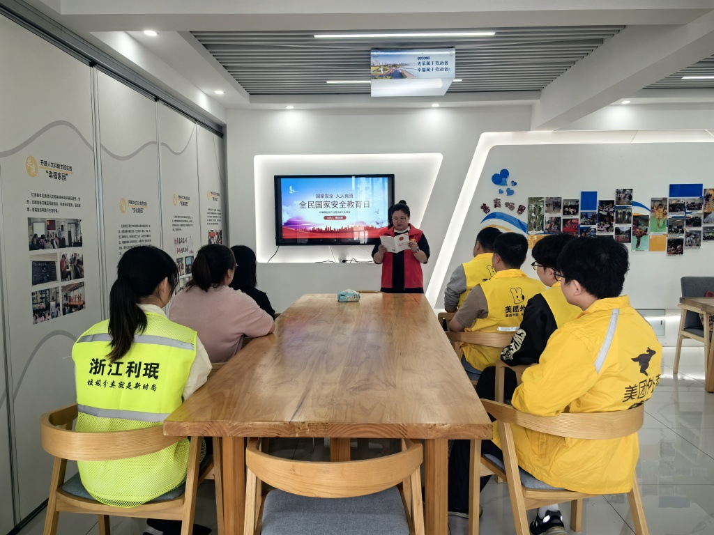 在城北街道红湖路社区户外劳动者工会驿站,工作人员邀请了辖区外卖小哥、垃圾分拣员、快递驿站站长等户外劳动者代表共同学习《中华人民共和国国家安全法》相关内容。通过集中学习和交流讨论,提升户外劳动者的安全素养与防范能力,营造“国家安全,人人有责”的良好社区氛围。