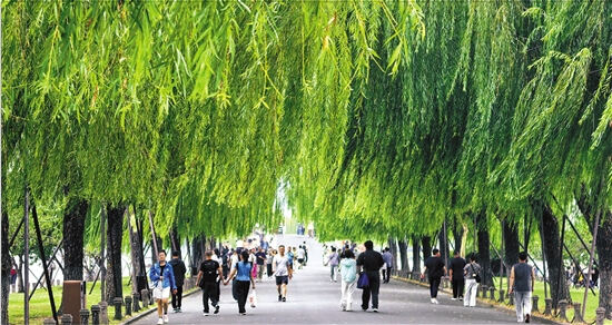10月14日,在弱冷空气影响下,杭城凉爽上线。西湖边,游客凉爽出游。今天起至17日,副高还会再次加强西伸北抬,气温可能会经历小幅反弹,但18日至19日有较强冷空气到来,杭城将出现“换季式”降温,可能一步入秋。