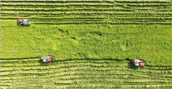 10月15日,在金华经济技术开发区苏孟乡后徐村,1160亩晚稻进入收割期。连片农田稻浪翻滚,大型收割机穿梭作业,一派丰收景象。据了解,该地块曾因高压电塔分割、耕地碎片化等问题,长期属于低效利用土地,土地综合整治后,蜕变为连片千亩良田。