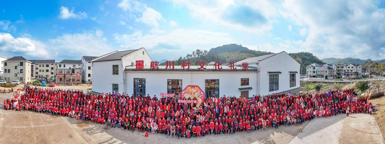 2月1日,建德航头镇航川村800余位新老村民齐聚文化礼堂,在“文艺村长”、文化特派员及摄影志愿者协助下,拍下了第二张“全村福”。