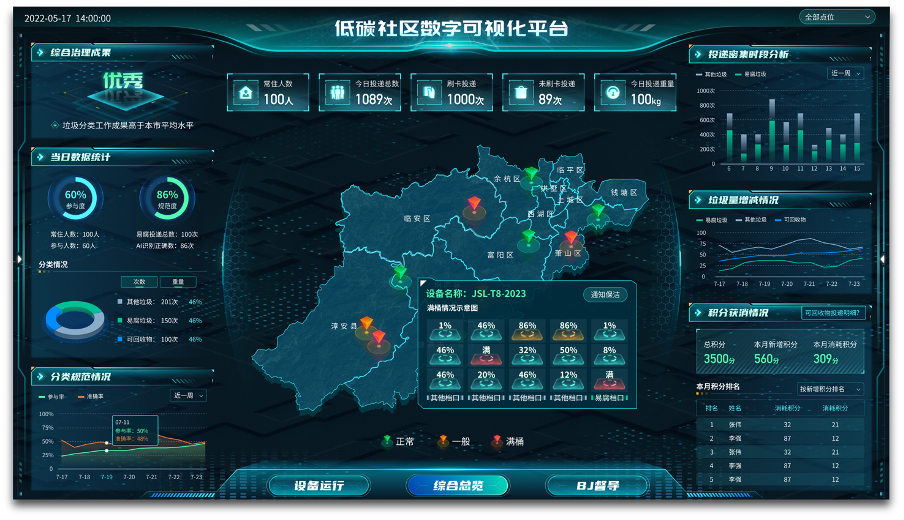 包括实时数据展示、指标体系展示、设备满桶分析、密集时段分析、多维度统计等功能。