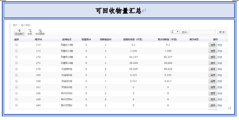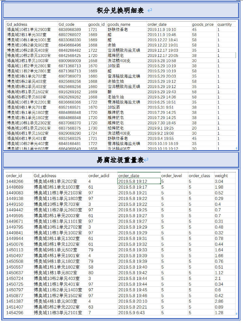 后台可查询每户居民二维码卡内积分情况,掌握居民积分余额、兑换情况,分析小区居民参与垃圾分类行为。